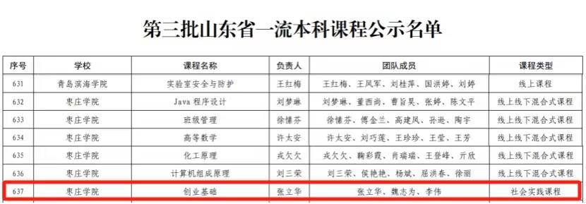 近日,山东省教育厅印发《山东省教育厅关于公布第三批山东省一流本科课程认定结果的通知》(鲁教高函〔2024〕11号),英国上市公司官网365申报的社会实践课程《创业基础》名列其中,取得了英国上市公司官网365省级一流本科课程建设的突破。