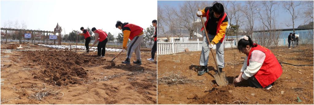 活动现场,志愿者们热情高涨,干劲十足,手持锄头、铁锹,分工明确、互相帮助,从翻地挖坑、抗苗运苗到摆正树苗、培土施肥再到浇水剪枝,井然有序地种植每一棵石榴树苗,构成了一道亮丽的风景线。经过大家的合力劳作,一棵棵树苗昂然挺立,试验田在和煦的春风中焕发出盎然生机。