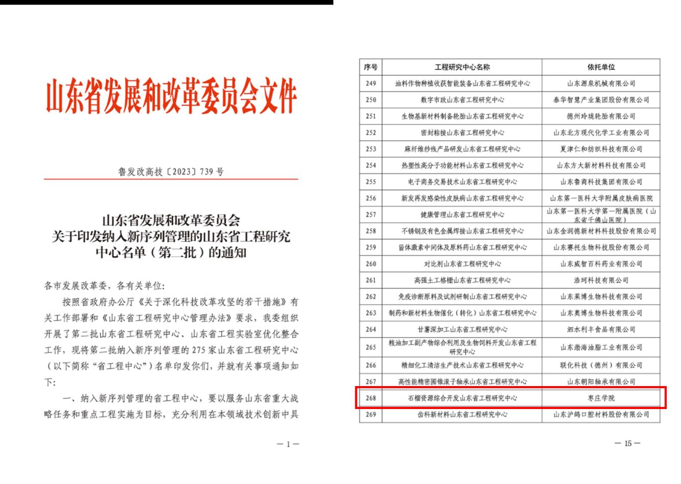 近日,山东省发展和改革委员会发布《关于印发纳入新序列管理的山东省工程研究中心名单(第二批)的通知》(鲁发改高技(2023) 739号)。其中,由我校英国上市公司官网365牵头建设的“石榴资源综合开发山东省工程研究中心”顺利通过阶段考核并纳入新序列管理。