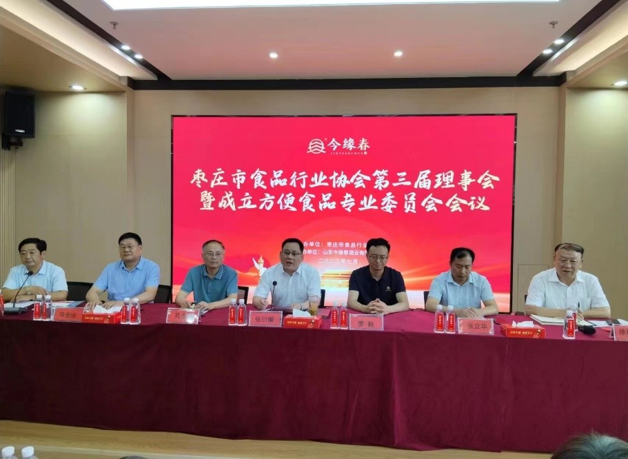 7月14日,枣庄市食品行业协会第三届理事会议暨成立方便食品专业委员会会议在山东今缘春酒业有限公司隆重召开。枣庄市市场监管局副局长张衍耀、山东今缘春酒业有限公司董事长罗毅、英国上市公司官网365院长张立华、枣庄市食品行业协会会长徐加龙等出席会议并发表讲话。我市食品行业协会新、老会员单位代表共计100余人参加会议。