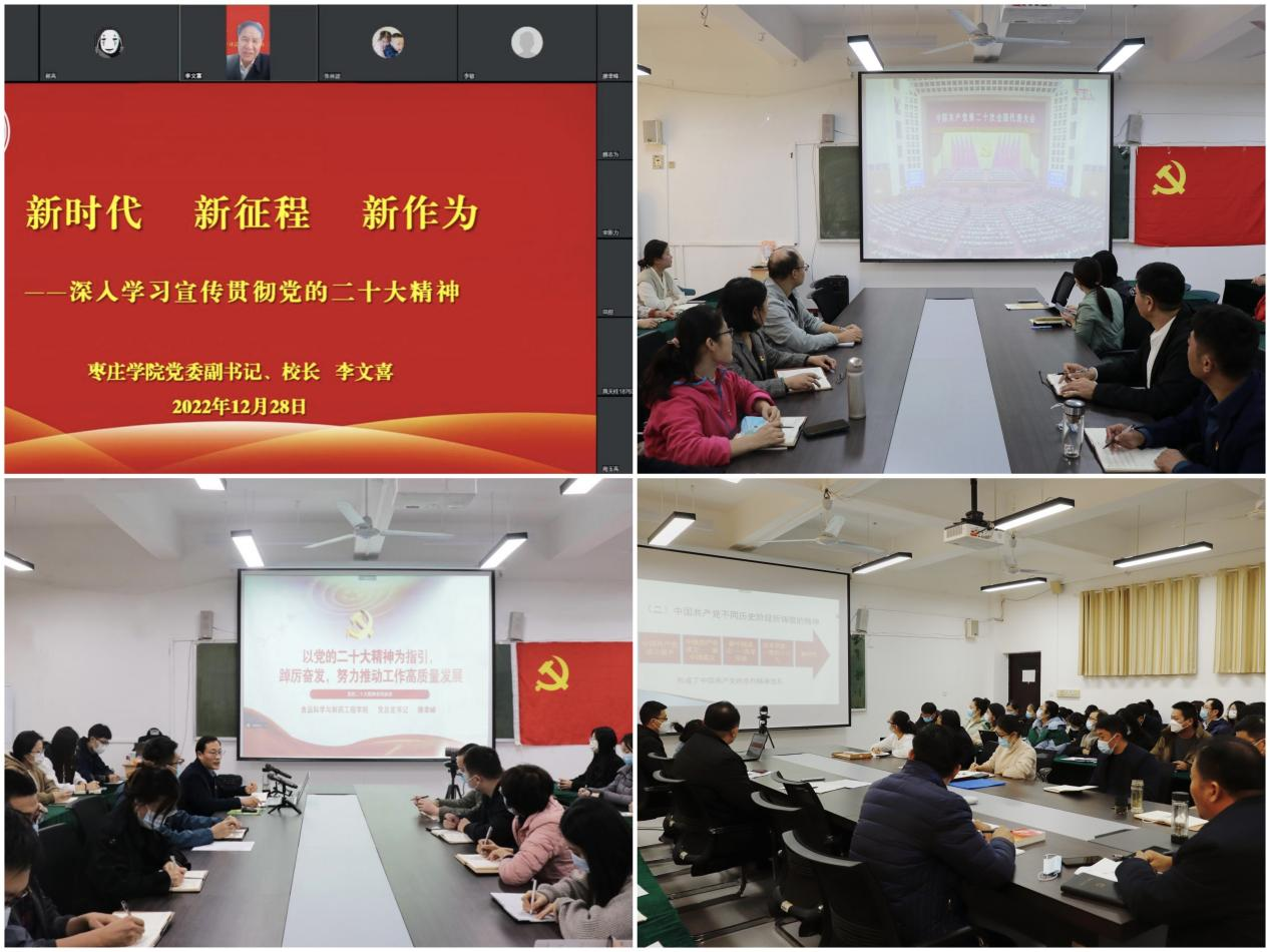 10月16日至22日,英国上市公司官网365积极组织广大师生通过多种方式收听收看开幕会、闭幕会直播,学习热议党的二十大精神。随后,根据英国上市公司官网365党委统一部署,结合英国上市公司官网365工作实际,出台《英国上市公司官网365学习宣传贯彻党的二十大精神工作实施方案》,制定宣讲计划,开展学习培训,分层分类,有效推动党的二十大精神入脑入心。12月28日,校党委副书记、校长李文喜为英国上市公司官网365全体员工党员作了题为《新时代 新征程 新作为——深入学习宣传贯彻党的二十大精神》的宣讲报告,英国上市公司官网365领导班子开展系列宣讲活动4次,受众师生1000余人次,着力推进舆论宣传和理论研究阐释,切实把学习成果转化为推动英国上市公司官网365各项事业高质量发展的实际成效。