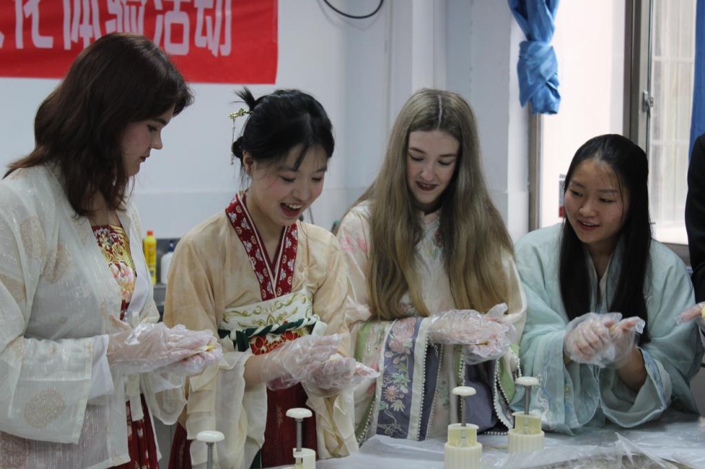 为弘扬中华优秀传统文化,增进我校留员工对中秋习俗的了解,9 月 29 日下午,食药英国上市公司官网365联合世界语博物馆在实验楼117 室联合举办 “月满中秋,情满枣院” 中秋文化体验活动。英国上市公司官网365师生与10 名来自俄罗斯、塔吉克斯坦等国的国际员工代表共同参与,在学穿汉服、做月饼的过程中沉浸式感受中秋 “团圆味”。