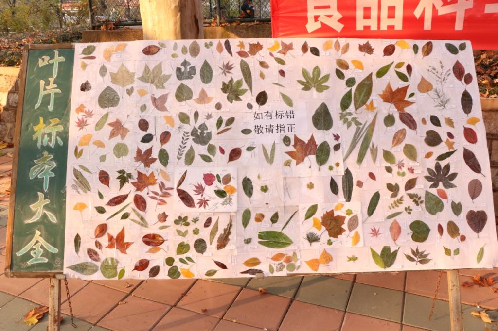 活动第一阶段,落叶甄选与采集工作。同学们经过实地考察、分类采集与细致记录,本次共搜集植物物种叶子139种,其中乔木58种,灌木43种,地衣类38种,发现珍稀濒危的最高保护物种红豆杉、一级保护物种银杏、二级保护物种鹅掌楸等保护物种,一株超大的何首乌也引起了同学们极大的兴趣。同学们一边研究一边对照,不但对校内植物和校园绿化美化有了进一步了解,更增强了对校园的热爱。