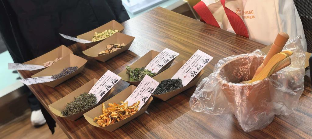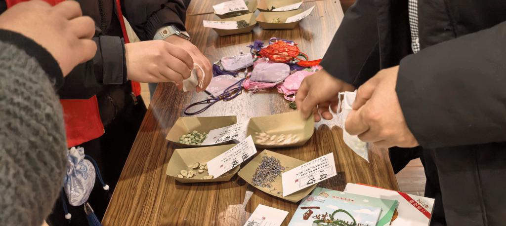 活动精准对接社区需求,将专业实践、文化传承与社区服务紧密结合,涵盖普法宣传、药食同源科普、中草药识别、香囊制作、春联送福等多个环节。志愿者通过现场讲解、案例分析以及发放宣传手册等形式,用通俗易懂的语言向居民普及《中华人民共和国食品安全法》以及反诈知识、消防安全等相关法律法规,提升了社区居民的法治意识和安全防范能力,引导大家学法、守法、尊法、用法,营造良好的社区法治环境。随后,志愿者系统讲解“药食同源”的文化渊源、核心理念及日常应用,让居民在轻松氛围中掌握科学食养知识,认识到日常饮食与健康密不可分,在平安健康中迎接新春佳节。接着,志愿者发挥专业优势为居民细致讲解讲授薰衣草、桂枝、艾草、枸杞等二十余种常见中草药的性状、功效、安全使用常识以及识别方法,将专业知识转化为居民实用的健康生活指南。紧接着,志愿者指导居民自主选择中草药体验制作香囊,让居民在动手实践中感受传统养生文化的魅力,增强了对中医药的直观认识。最后,组织写春联送福字活动,一副副寓意吉祥的春联、一个个饱满有力的“福”字,承载着真挚的新春祝福,为社区增添了浓厚的文化气息和节日氛围。