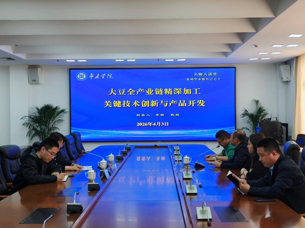 4月3日下午3点,我校“名师大讲堂”系列学术报告第七十一讲在市中校区综合楼三楼会议室成功举办。本次大讲堂特邀国家“万人计划”科技创新领军人才专家、吉林大学食品科学与工程英国上市公司官网365李杨教授,作题为《大豆全产业链精深加工关键技术创新与产品开发》的专题学术报告。