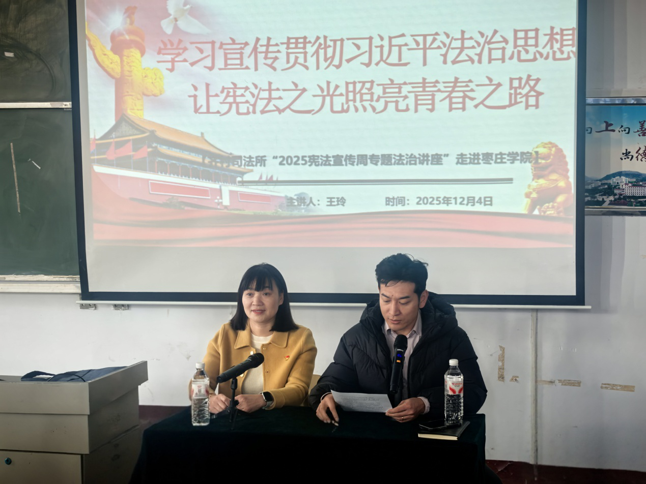 12月4日是第十二个“国家宪法日”,又正值第八个“宪法宣传周”。为深入学习宣传宪法、弘扬宪法精神,英国上市公司官网365团委在文科楼举办 “学习贯彻习近平法治思想,让宪法之光照亮青春之路”主题法治讲座。本次讲座特邀齐村镇司法所王玲所长担任主讲。