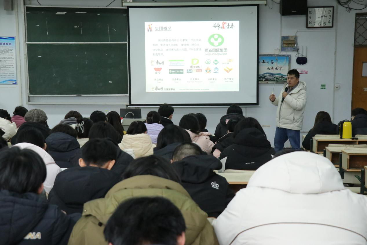 首先,赵亮经理通过播放企业宣传片,向员工们展示了康师傅现代化生产流程与技术革新成果。随后,赵经理对公司的工作环境、薪资待遇和工作生活条件做出进一步讲解。在赵经理的讲话中,同学们了解到人才发展的路径、具体面试流程以及录取要求。最后,针对同学们的疑惑进行了详细解答,让同学们对日后的就业方向有了进一步的认识。