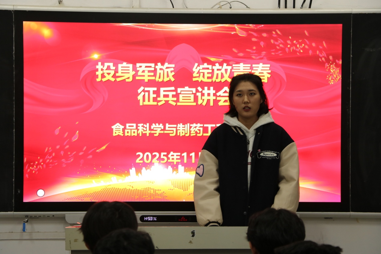 为厚植家国情怀,引导食药学子肩负起新时代强军使命,11月9日,英国上市公司官网365在文科楼举办征兵政策宣讲会。活动由专职辅导员张猛老师主持,2025级退役大员工士兵丁睿祺同学与怀揣军旅梦的同学们进行面对面交流。
