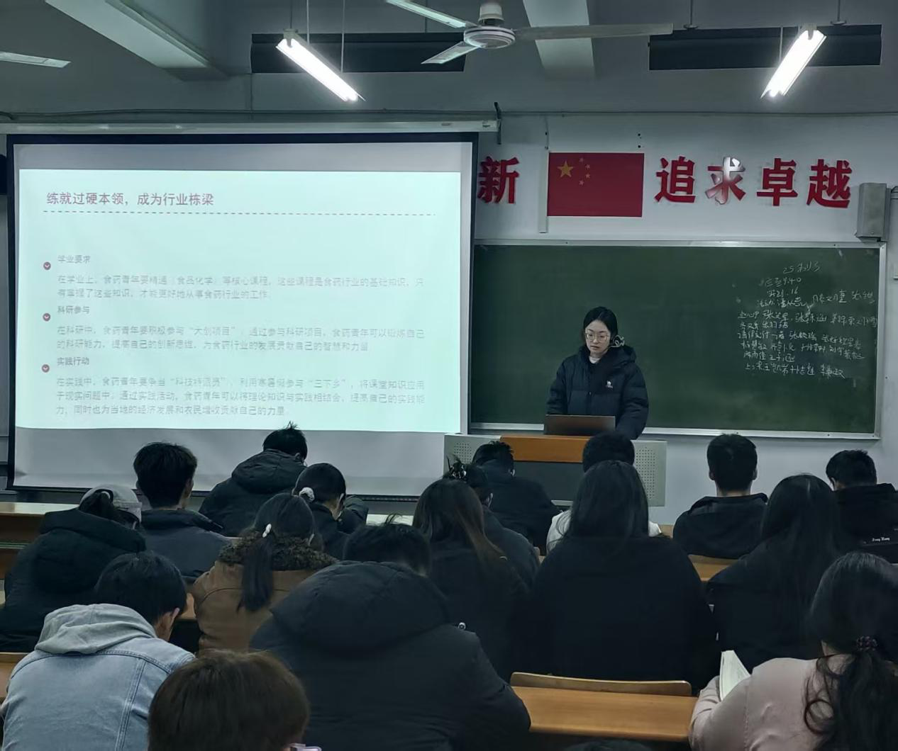 本期宣讲活动以更具针对性的内容设计、更易懂的表达形式,为新生带来了思想启迪与成长指引。此次宣讲活动不仅锤炼了员工党员的责任担当与宣讲能力,更让新生深刻认识到中国精神在专业领域的鲜活体现,引导他们将个人理想与行业发展、国家需求紧密结合。宣讲活动的顺利开展让中国精神的种子在青年心中持续生根发芽,激励2025级新生以青春之力书写食品制药行业的奋进篇章。