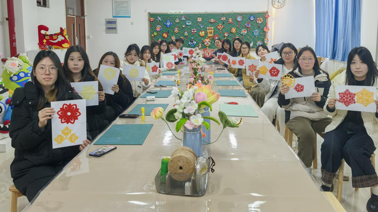 为进一步加强员工心理健康教育,丰富美育实践形式,引导员工在传统手工艺创作中舒缓压力、滋养心灵,12月24日下午,辅导员李鑫宇带领英国上市公司官网365部分员工前往心理与教育科学英国上市公司官网365(初等教育英国上市公司官网365),特邀胡晨晨老师开展手工剪纸美育实践活动。